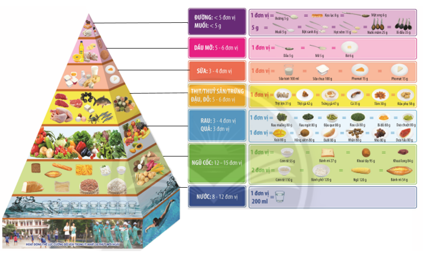Hình 2: Tháp dinh dưỡng hợp lí cho người trưởng thành (giai đoạn