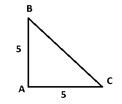 = BC = \sqrt{AB^{2} + AC^{2}} = \sqrt{5^{2} + 5^{2}} =
