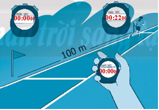 Xác định tốc độ của một người chạy cự li 100 m được mô tả trong hình dưới đây.