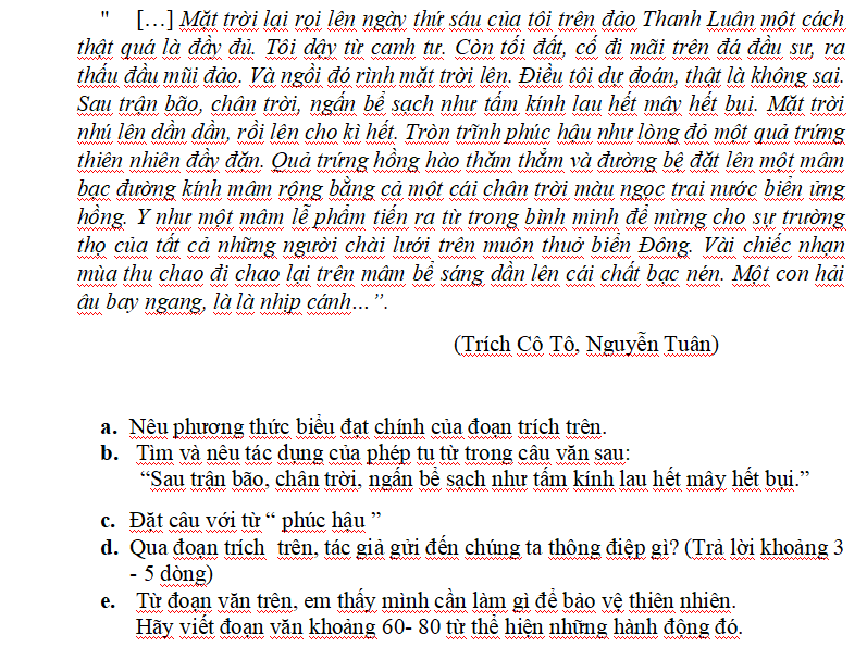 Đọc đoạn văn sau và trả lời các câu hỏi:
