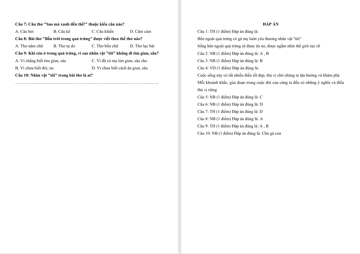 Đọc hiểu Bầu trời trong quả trứng lớp 4