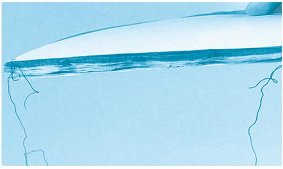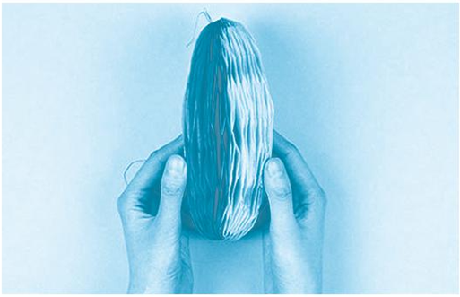 Bạn sử dụng chỉ khâu hai đầu miếng giấy, buộc hơi lỏng và chừa một đoạn chỉ để treo đèn lồng.
