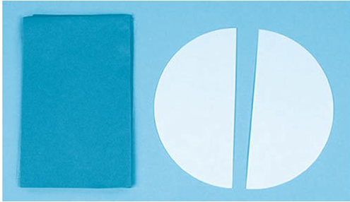 Bước thứ nhất: Dùng bìa cứng cắt hình tròn có kích cỡ ứng với chiếc lồng đèn bạn mong muốn, cắt thành hai nửa bằng nhau. Sau đó, bạn cắt thêm 40 đến 50 lớp giấy ăn hình chữ nhật có kích cỡ lớn hơn một chút so với nửa miếng bìa tròn