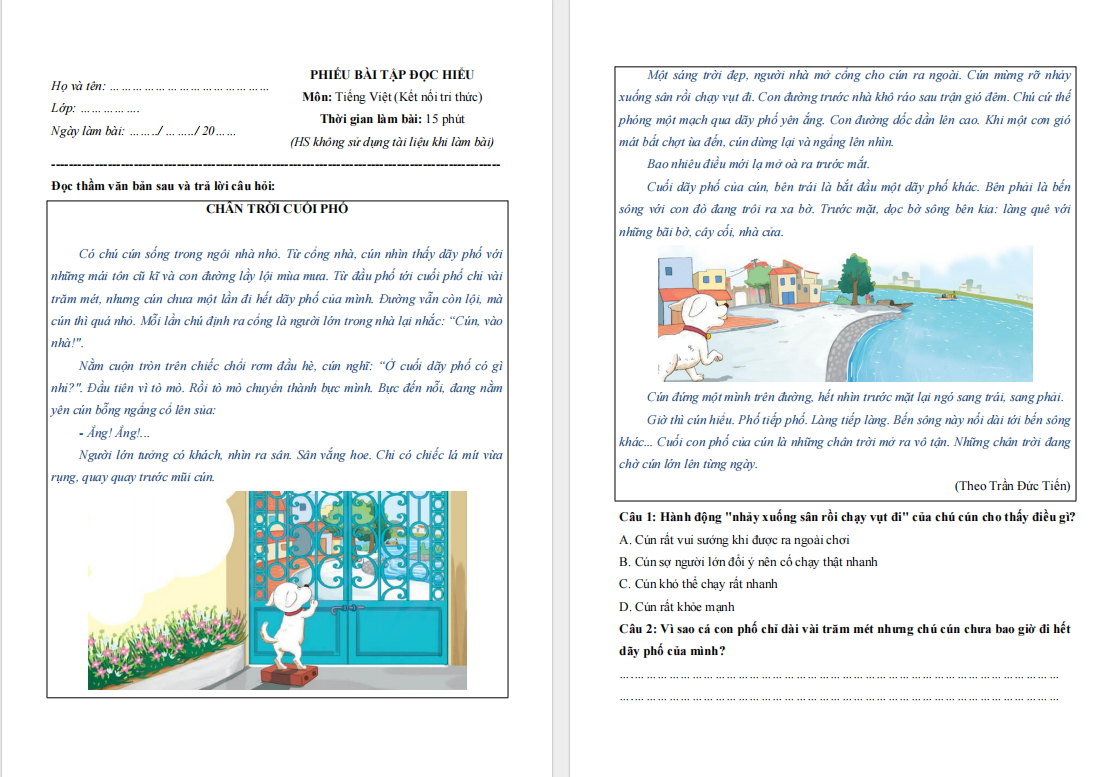 Đọc hiểu bài Chân trời cuối phố lớp 4 Kết nối tri thức do VnDoc biên soạn nhằm giúp các em ôn luyện và củng cố kĩ năng đọc hiểu văn bản qua các bài đọc thuộc chương trình Tiếng Việt lớp 4 sách Kết nối tri thức.