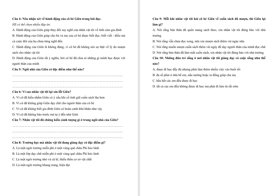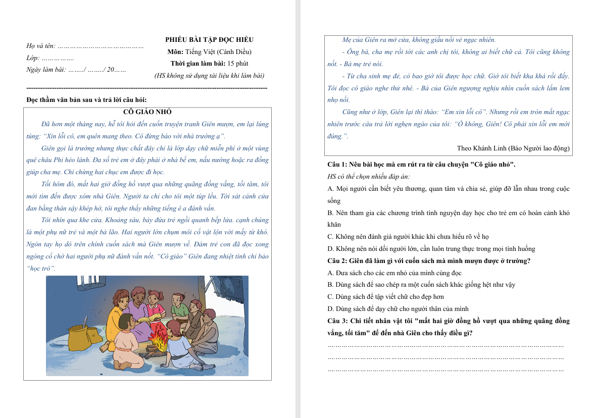 Đọc hiểu Cô giáo nhỏ lớp 4
