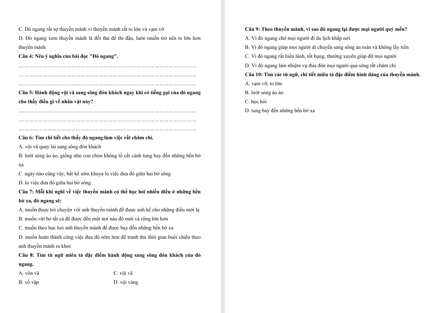 Đọc hiểu Đò ngang lớp 4