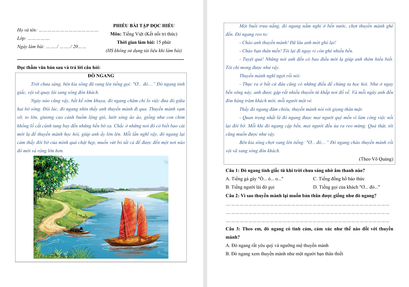 Đọc hiểu văn bản Đò ngang lớp 4 Kết nối tri thức