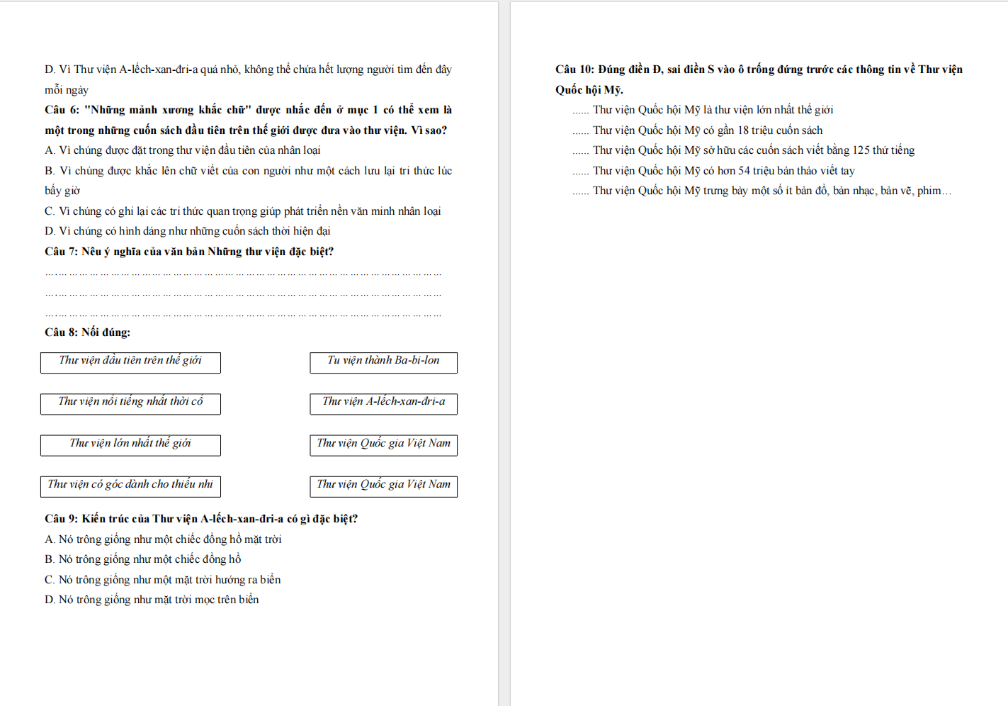 Đọc hiểu Những thư viện đặc biệt lớp 4