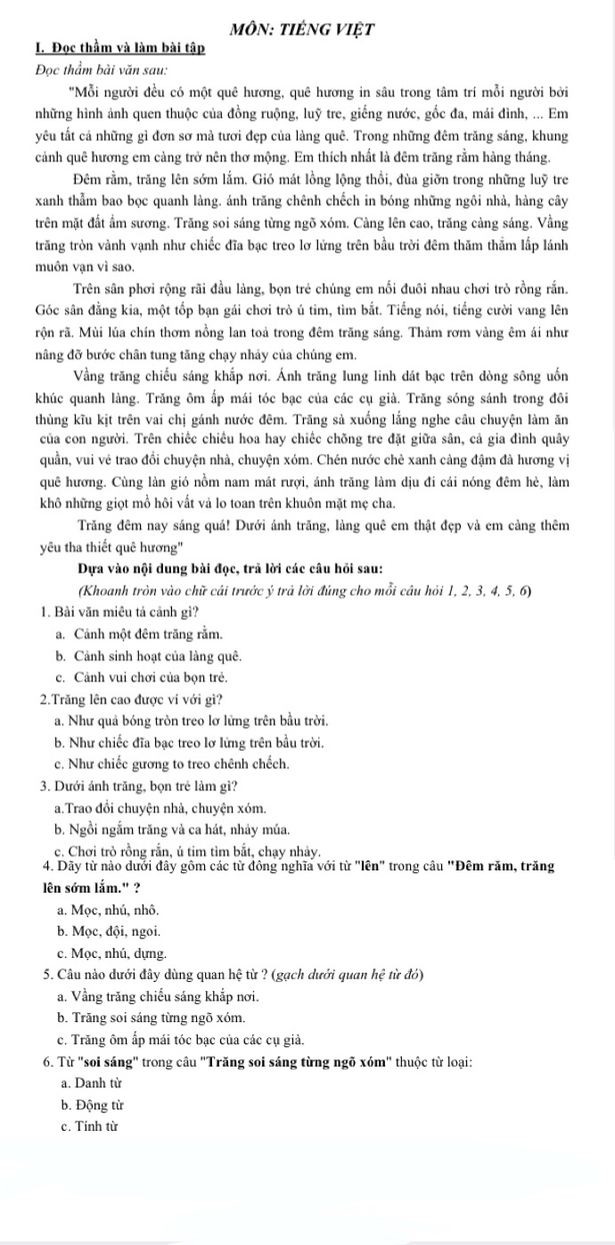 Đọc và trả lời câu hỏi