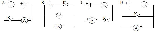 Câu 3. Ampe kế trong sơ đồ mạch điện nào dưới đây được mắc đúng?
