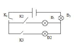 Câu 3: (3 điểm) Cho mạch điện gồm 1 nguồn điện (2 pin); 2 bóng đèn Đ1, Đ2 mắc nối tiếp; 1ampe kế đo cường độ dòng điện chạy trong mạch; 1 khóa K; dây dẫn.