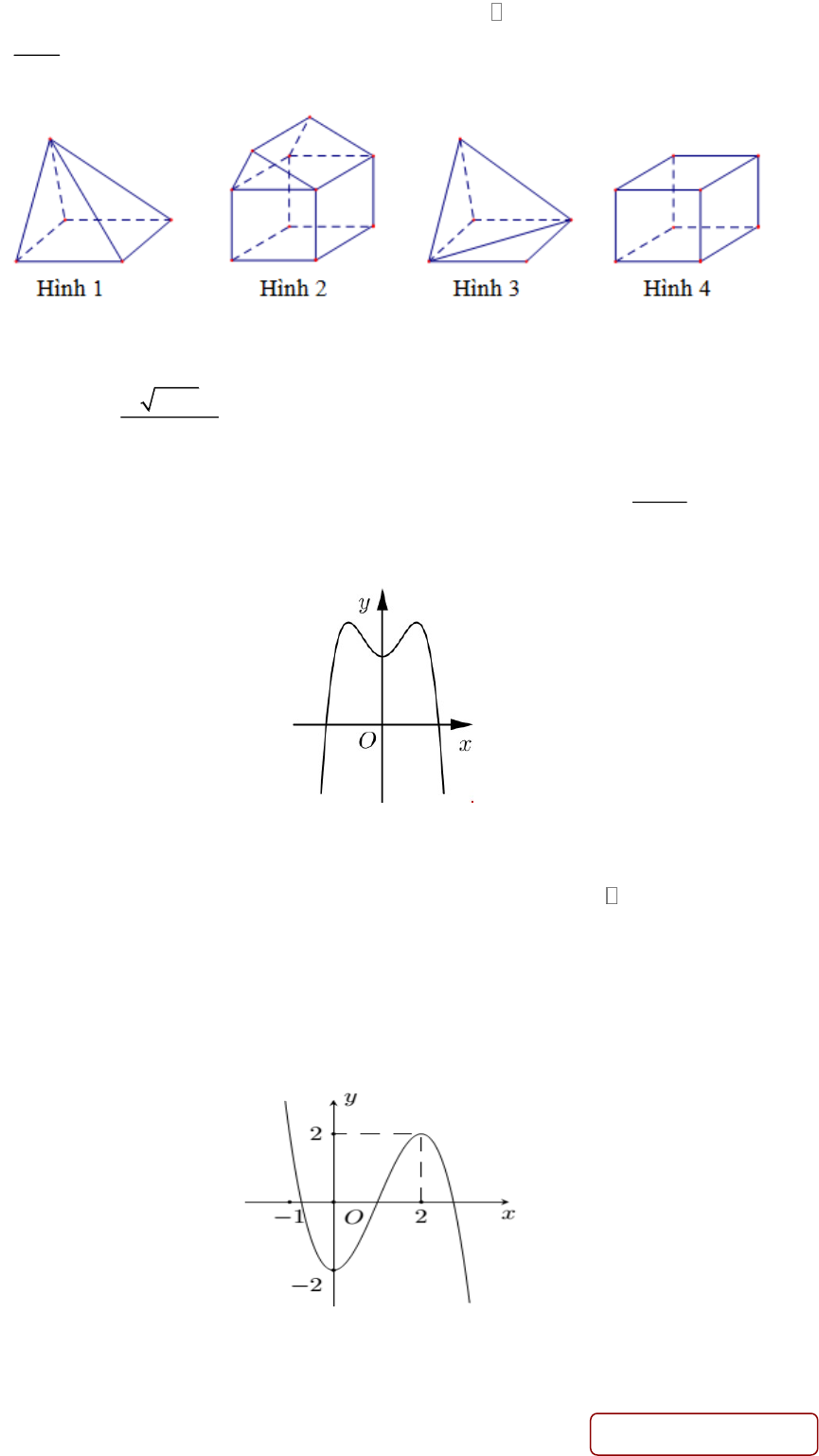 Câu 23: Đường cong trong hình vẽ bên là đồ thị của hàm số nào dưới đây?