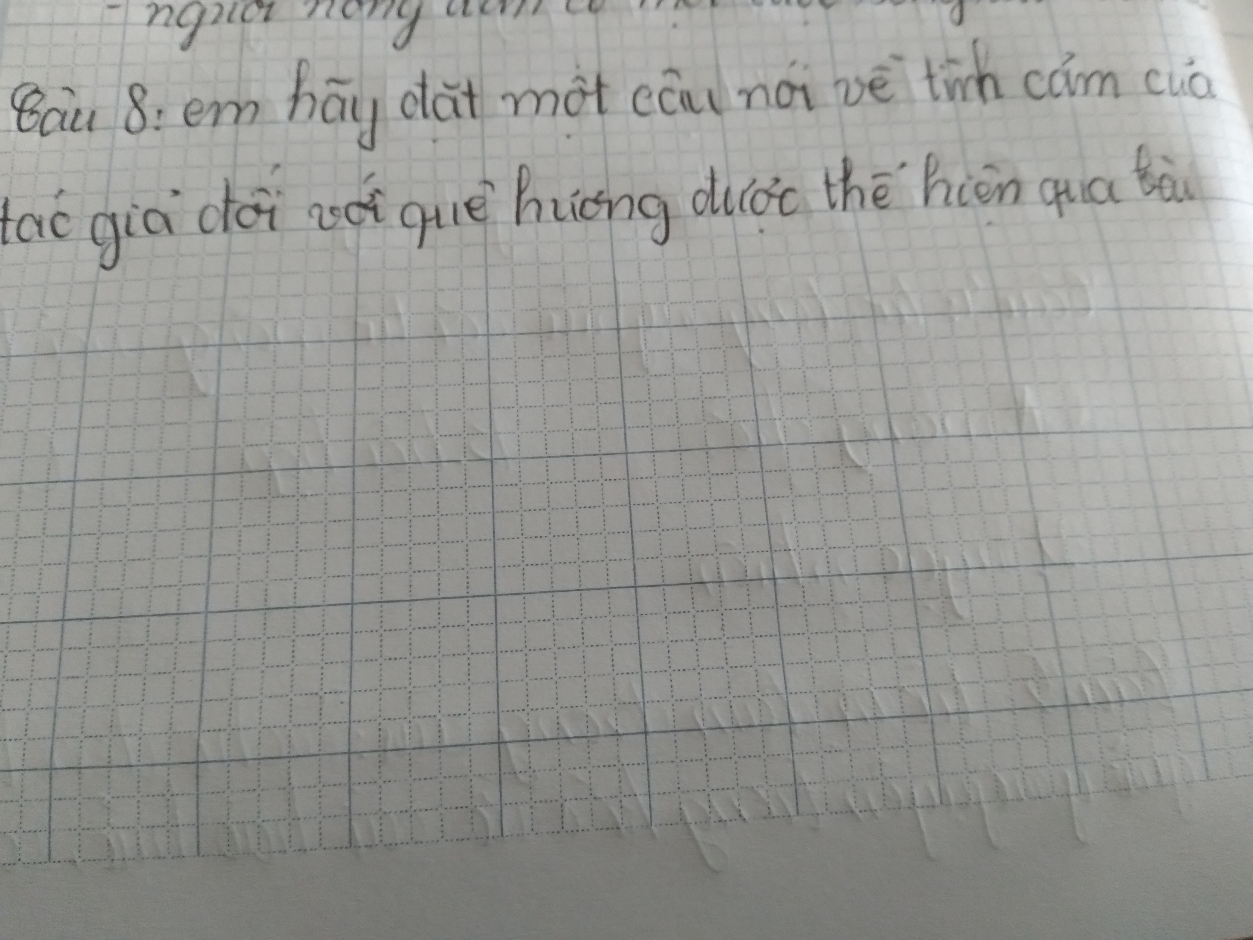 Em hãy đặt một câu nói về tình cảm của tác giả đối với quê hương được