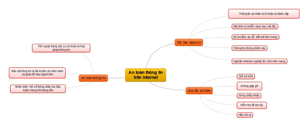 Em hãy dùng sơ đồ tư duy (vẽ trên giấy hoặc tạo bằng phần mềm) trình bày tóm tắt nội dung bài 9. An toàn thông tin trên Internet