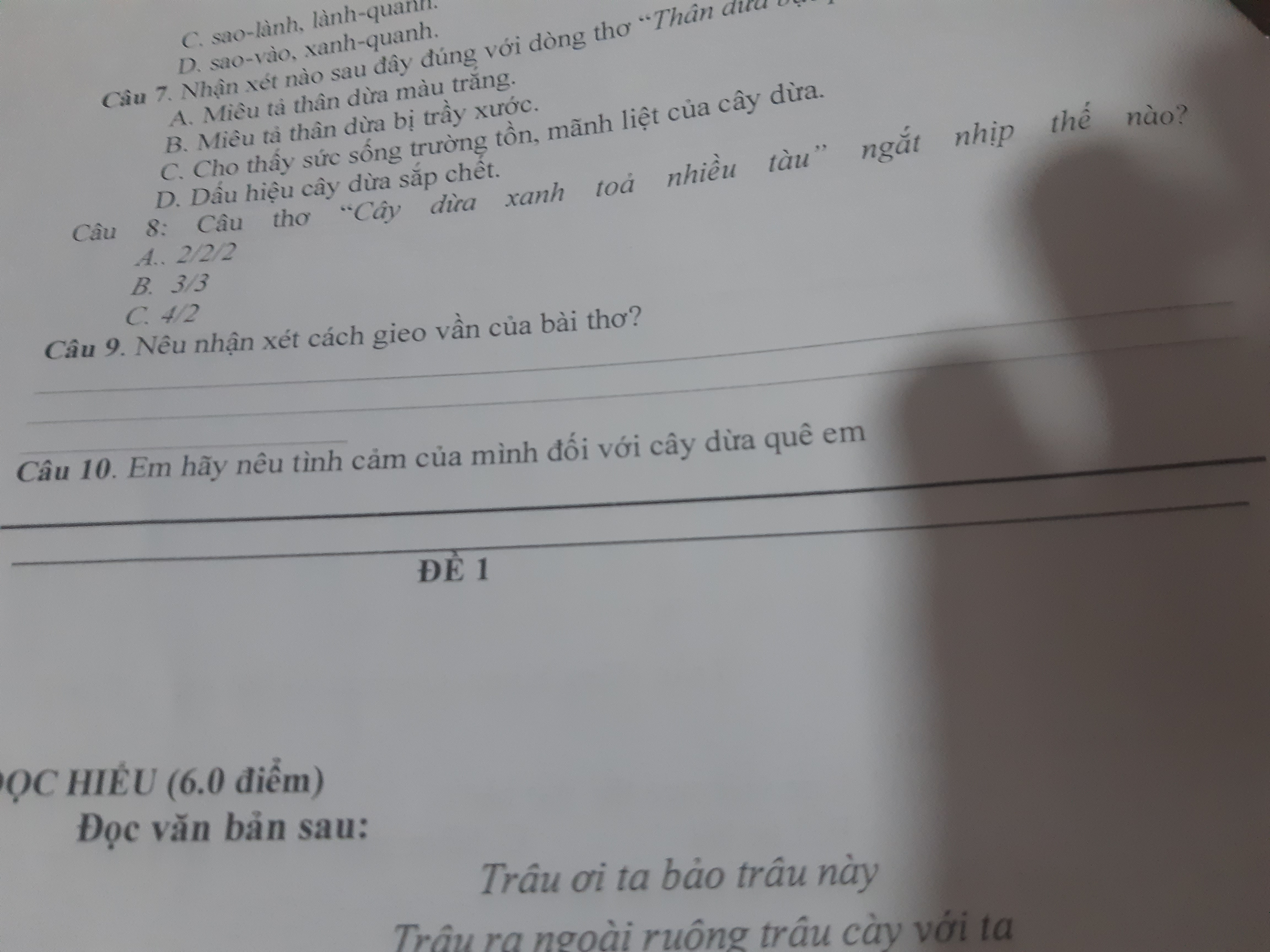 Em hãy nêu tình cảm của mình đối với cây dừa quê em ( 2 dòng tập)