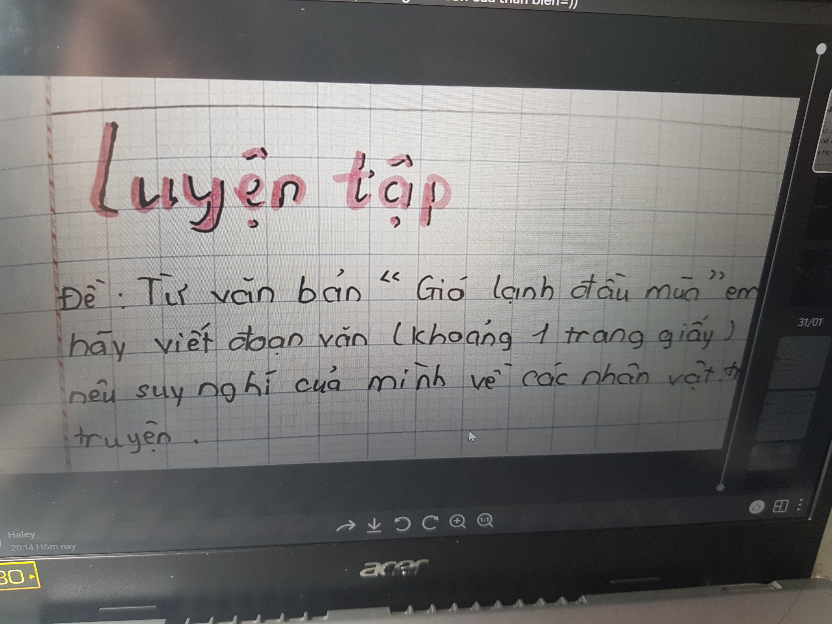 Từ văn bản Gió lạnh đầu mùa, em hãy viết đoạn văn nêu suy nghĩ về các nhân vật trong truyện