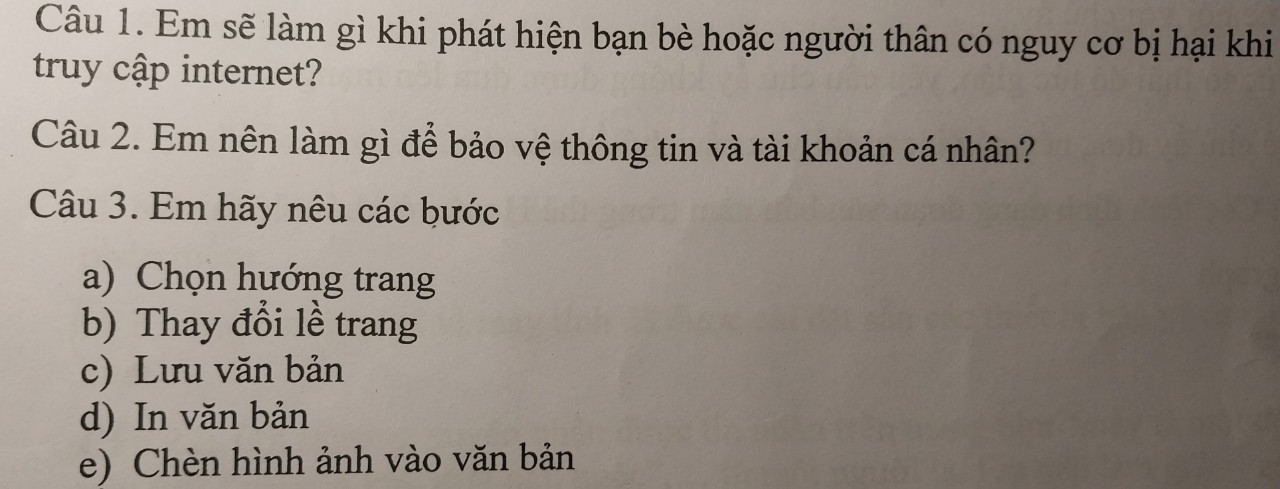 Em sẽ làm gì khi phát hiện bạn bè và người thân có nguy cơ bị hại khi truy cập Internet