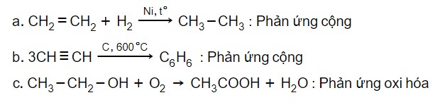 b) Đun nóng axetilen ở 600°C với bột than làm xúc tác thu được benzen.