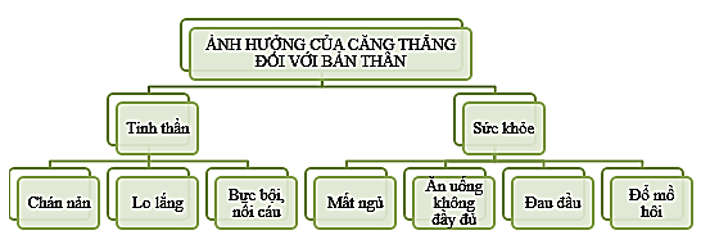 Thiết kế một sơ đồ tư duy về ảnh hưởng của căng thẳng đối với bản thân.