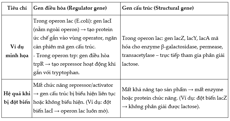 Bảng 2. Mô tả gene điều hòa và gene cấu trúc