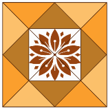Có một viên gạch hình vuông, giữa viên gạch có một hình vuông màu trắng được vẽ họa tiết (như hình trên).