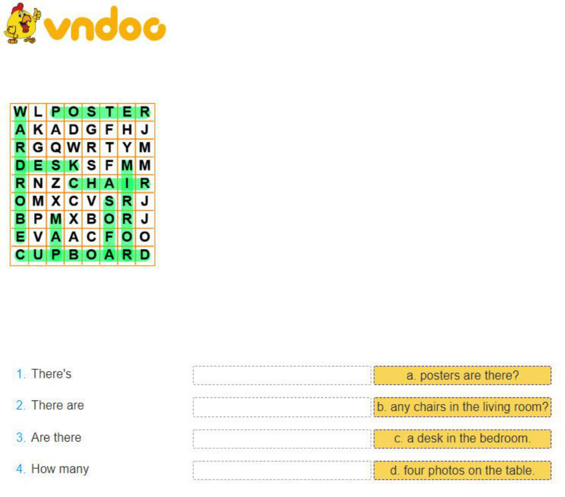 VnDoc.com xin giới thiệu đến các em Giải bài tập SBT Tiếng Anh lớp 3 chương trình mới Unit 14: Are there any posters in the room? do VnDoc.com sưu tầm và đăng tải là nguồn tài liệu hữu ích với nội dung giải chi tiết và rõ ràng sẽ giúp các em tiếp thu đầy đủ kiến thức đã được trang bị trên lớp.