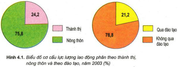 - Nhận xét về cơ cấu lực lượng lao động giữa thành thị và nông thôn. Giải thích nguyên nhân.