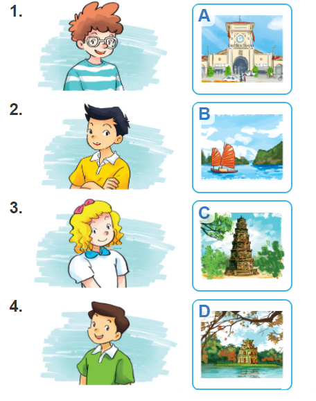 4. Listen and match. Nghe và nói.