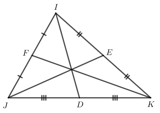 Nối ID, JE, KF ta được ba đường trung tuyến của tam giác IJK.