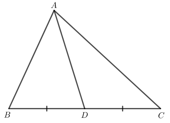 • Trong hình vẽ trên, ta thấy D là trung điểm của BC nên AD là đường trung tuyến của tam giác ABC.