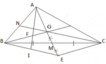 b) Gọi I là trung điểm của BE, AI cắt BG tại F. Chứng minh AF = 2 FI.