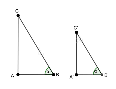 \(\begin{array}{l}\widehat A = \widehat {A'} = {90^0}\\\widehat B = \widehat {B'} = \alpha \end{array}\)