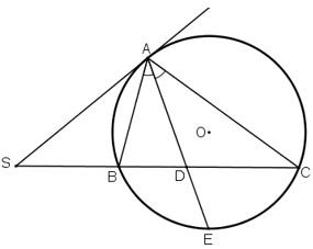 Qua điểm S nằm bên ngoài đường tròn (O), vẽ tiếp tuyến SA và cát tuyến SBC của đường tròn . Tia phân giác của góc BAC cắt dây BC tại D. Chứng minh SA = SD.