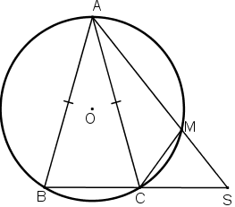 Cho đường tròn (O) và hai dây AB, AC bằng nhau. Trên cung nhỏ AC lấy một điểm M. Gọi S là giao điểm của AM và BC.