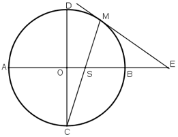 Cho AB và CD là hai đường kính vuông góc của đường tròn (O). Trên cung nhỏ BD lây một điểm M . Tiếp tuyến tại M cắt tia AB ở E, đoạn thẳng CM cắt AB ở S.Chứng minh ES = EM.