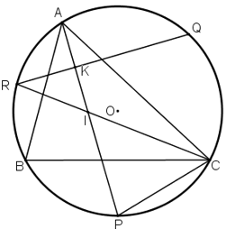 Cho tam giác ABC nội tiếp đường tròn. P,Q,R theo thứ tự là các điểm chính giữa của các cung bị chắn BC, CA, AB bởi các góc A, B, C.