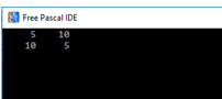program dientro; uses crt; var a,b:integer; procedure hoandoi(var x,y:integer); var TG:integer; begin TG:=x; x:=y; y:=TG; end; begin clrscr; a:=5; b:=10; writeln(a:6,b:6); hoandoi(a,b); writeln(a:6,b:6); readkey; end.