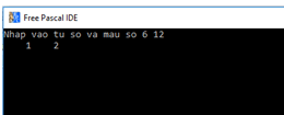 program rutgon; uses crt; var TuSo,MauSo,a:integer; function UCLN(x,y:integer):integer; var sodu:integer; begin while y<>0 do begin sodu:=x mod y; x:=y; y:=sodu; end; UCLN:=x; end; begin clrscr; write('Nhap vao tu so va mau so '); readln(TuSo,MauSo); a:=UCLN(TuSo,MauSo); if a>1 then begin TuSo:=TuSo div a; MauSo:=MauSo div a; end; writeln(TuSo:5,MauSo:5); readkey; end.