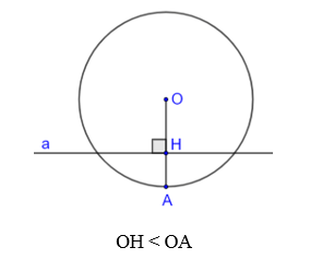 Cho đường thẳng a và điểm O. Gọi H là chân đường vuông góc hạ từ O xuống a, và A là một điểm thuộc tia OH. Trong mỗi trường hợp sau đây, hãy vẽ đường tròn (O; OA) và cho biết đường thẳng a và đường tròn (O; OA) có bao nhiêu điểm chung?