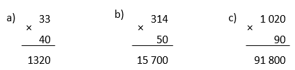 | a) 33 × 40 | b) 314 × 50 | c) 1020 × 90 |
