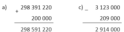 a) 1 000 000 + 600 000 – 200 000 = 1 600 000 – 200 000 = 1 400 000