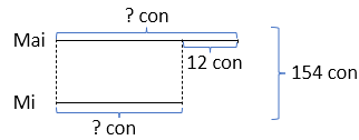 Mai và Mi cùng nhau gấp được 154 con hạc giấy. Mai gấp nhiều hơn Mi 12 con hạc giấy. Hỏi mỗi bạn gấp được bao nhiêu con hạc giấy?