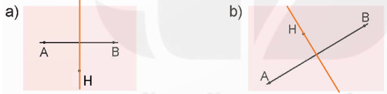 Bước 1: Đặt một cạnh góc vuông của ê ke trùng với đường thẳng AB và cạnh góc vuông thứ hai gặp điểm H.