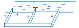 \(E\) dọc theo một con sông (như hình vẽ) để làm một khu đất có hai phần chữ nhật để trồng rau. Đối với mặt hàng rào song song với bờ sông thì chi phí nguyên vật liệu là
