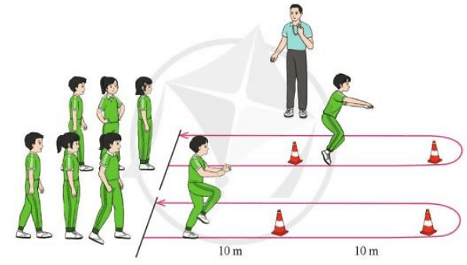 + Kẻ một đường thẳng làm vạch xuất phát, đồng thời làm vạch đích. Đặt các cọc nấm cách vạch xuất phát và cách nhau 10m.