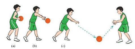 + Thực hiện: Kèo bóng theo đường vòng cung từ ngoài vào trong, từ dưới lên trên, đến ngang ngực thì xoay cổ tay hướng xuống mặt sân, thực hiện duỗi tay chuyền bóng bật đất (H.1b). Vị trí tiếp xúc của bóng với mặt đất là 2/3 khoảng cách từ người chuyền bóng đến người bắt bóng (H.le).