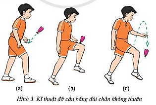 - Đỡ cầu bằng đùi chân không thuận: Khi xác định được điểm rơi của cầu, lùi chân trước một bước (hoặc bước chân sau lên một bước chuyển trọng lượng cơ thể dồn vào chân thuận (H.3a), chân không thuận lăng ra trước và lên trên, kết hợp gập gối, nâng đùi vuông góc với thân người khi tiếp xúc cầu (H.3b). Lúc chạm cầu, đùi hơi đưa lên trên và hơi hướng vào trong, sang phía chân thuận để cầu rơi sang phía chân thuận (H.3c).