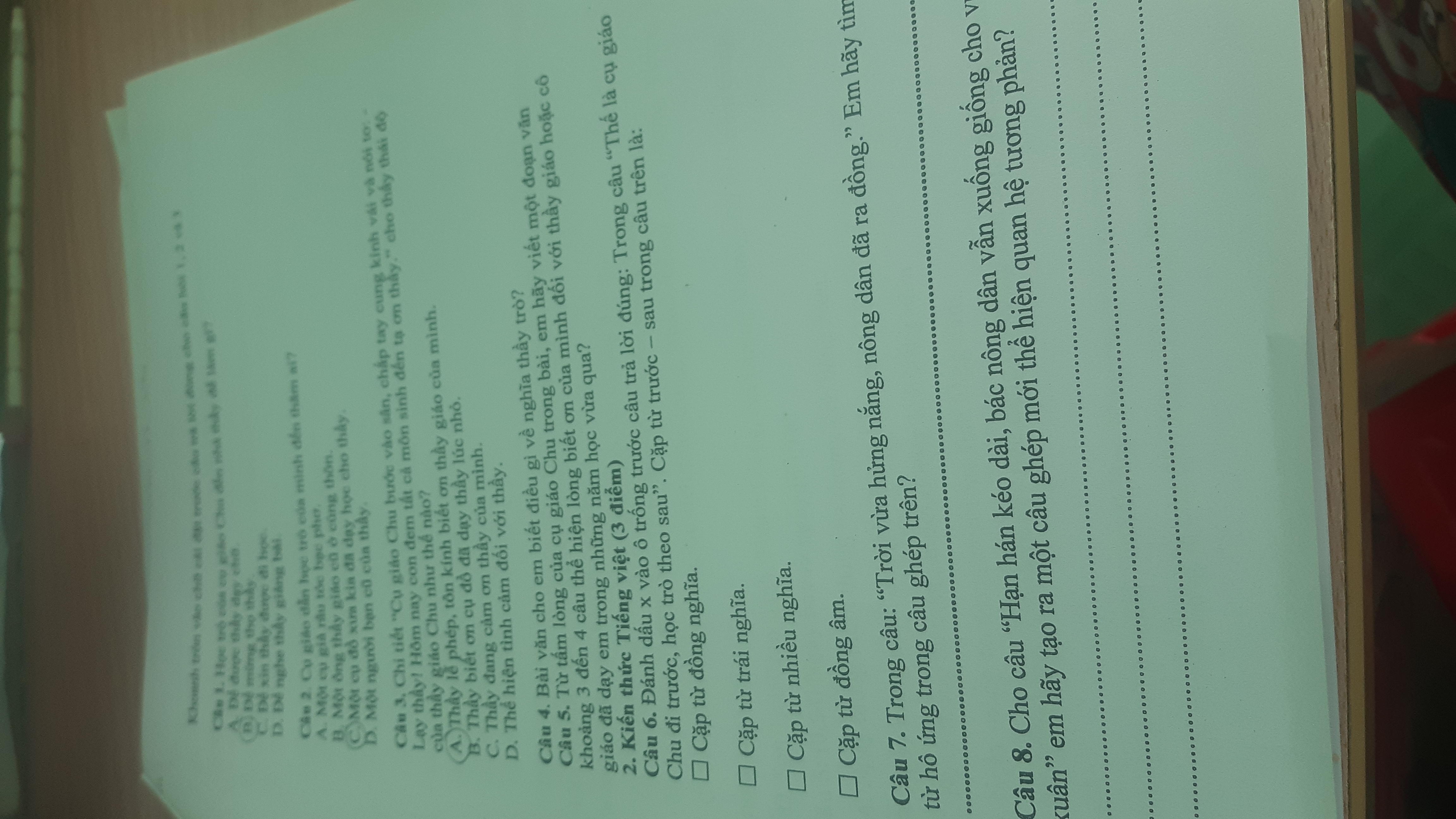 Viết đoạn văn khoảng 3 - 4 câu thể hiện lòng biết ơn đối với thầy/cô giáo đã dạy em