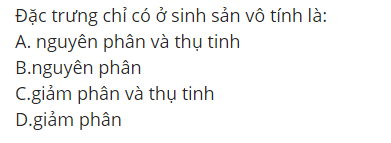 Đặc trưng chỉ có ở sinh sản vô tính là gì?