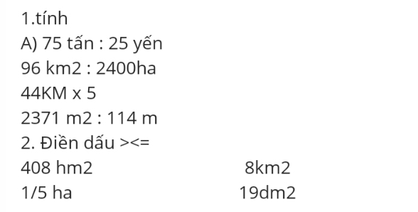 bài 1 tính: 75 tấn : 35 yến